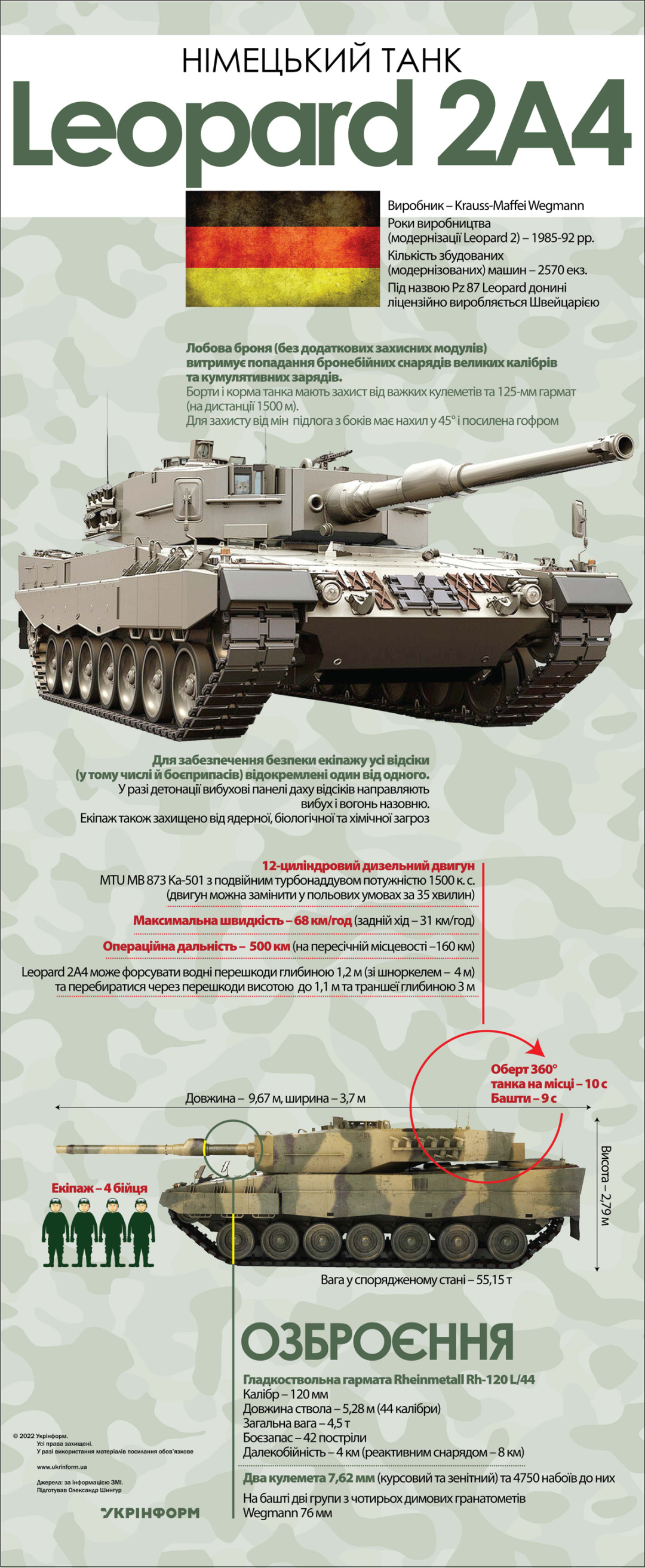 Німецький концерн Rheinmetall планує передати Україні 14 бойових танків Leopard 2A4. Їх постачатимуть від імені уряду Нідерландів.