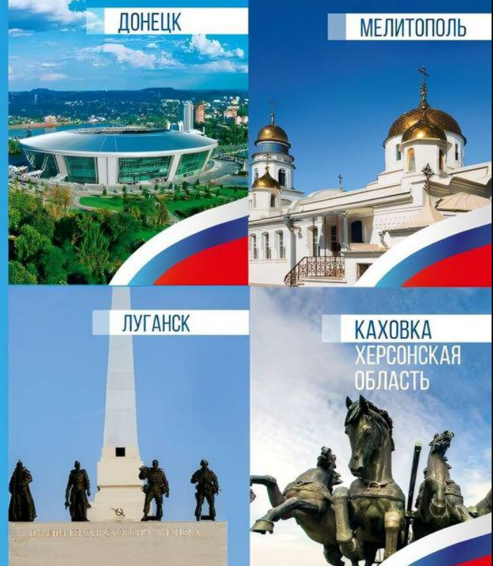 Однак згодом він замінив зображення, де не вказано Запоріжжя, Херсон, а зображено Каховку, Луганськ, Донецьк та Мелітополь.