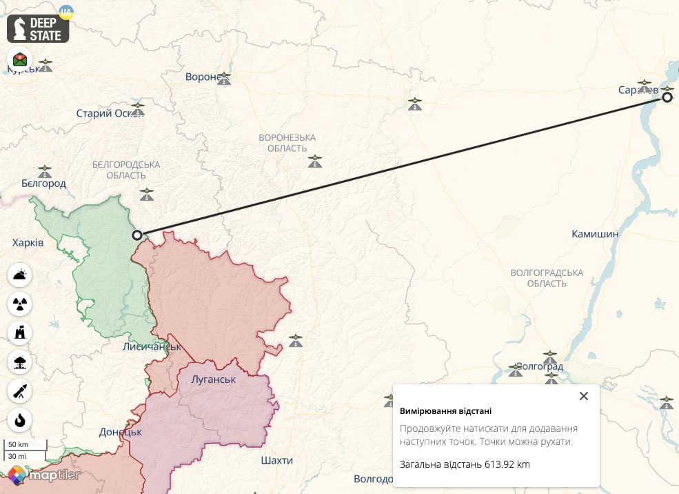 Від контрольованої Україною території до аеродрому "Енгельс-2" понад 600 км.