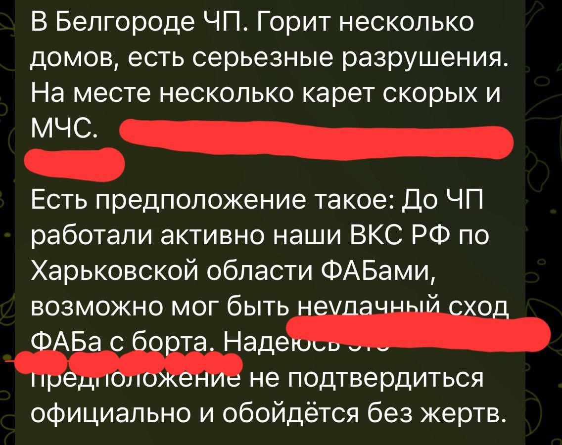 Раніше бєлгородський телеграм-канал "Попіл" припустив, що на будинок у приватному секторі могла впасти російська авіабомба.
