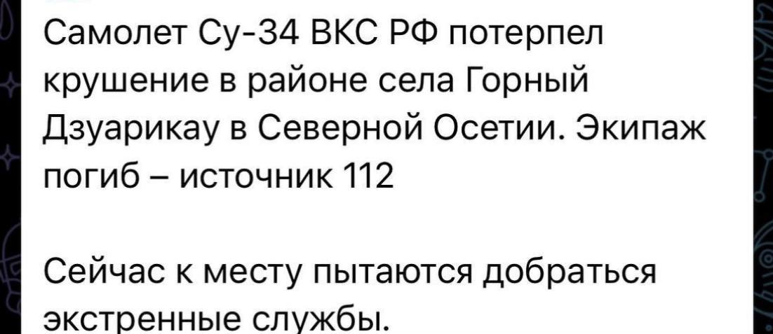 У ніч на 11 червня в Республіці Північна Осетія - Аланія зазнав аварії російський винищувач-бомбардувальник Су-34. Як повідомило Міністерство оборони РФ, літак упав у гірській місцевості під час планового навчально-тренувального польоту.