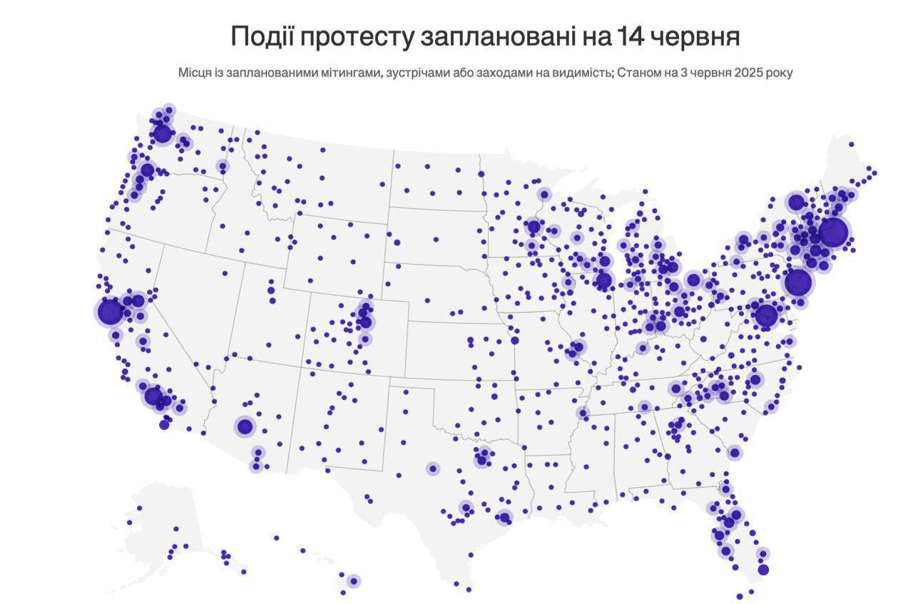 14 червня Сполучені Штати охоплені не лише святковими подіями, а й хвилею протестів. Цього дня країна відзначає 250 років із дня створення Армії США, День прапора, а також — 79-річчя президента Дональда Трампа. Водночас по всій країні розгортаються масові мітинги проти політики глави держави.