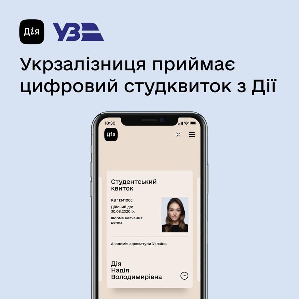 "Укрзалізниця" дозволила студентам користуватися цифровим студентським квитком з мобільного додатка "Дія" при посадці в поїзд.