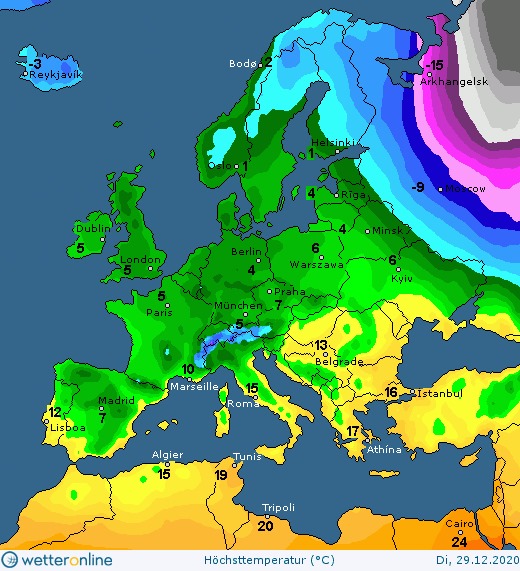 За її словами, завтра, 29 грудня в Україні протягом дня очікується +5+9 градусів, на Півдні +7+14 градусів. І лише на північному сході та Сході України буде холодніше: вдень 0+4 градуси, а вночі - невеликі "мінуси".