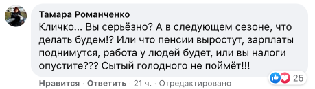 Публікація Віталія Кличка в Facebook з новиною про те, що опалення і гаряча вода протягом опалювального сезону не подорожчають, зібрала безліч коментарів. Як з'ясувалося, більша частина українців не дуже й рада тому, що відбувається. Хтось вважає, що якість надаваних комунальних послуг залишає бажати кращого, а хтось переживає, що вирішення проблеми носить тимчасовий характер, і тому в наступному опалювальному сезоні слід чекати "сюрпризів".