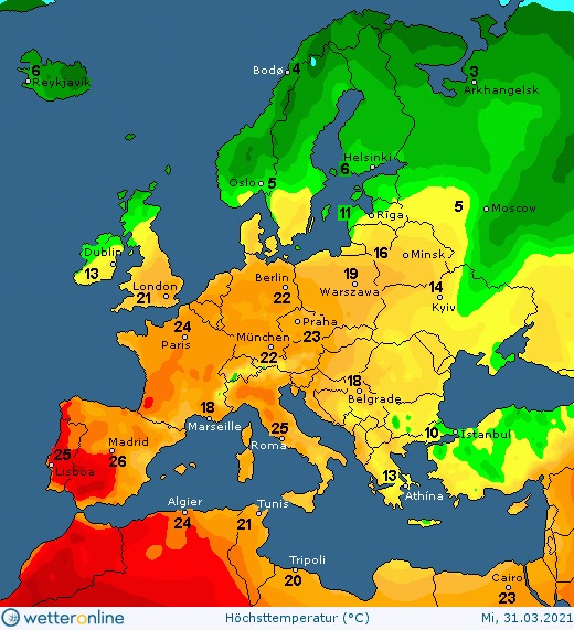 За її словами, 31 березня температура повітря в більшості областей України становитиме протягом дня +10+14 градусів. У східних областях буде найсвіжіше, +6+9 градусів.