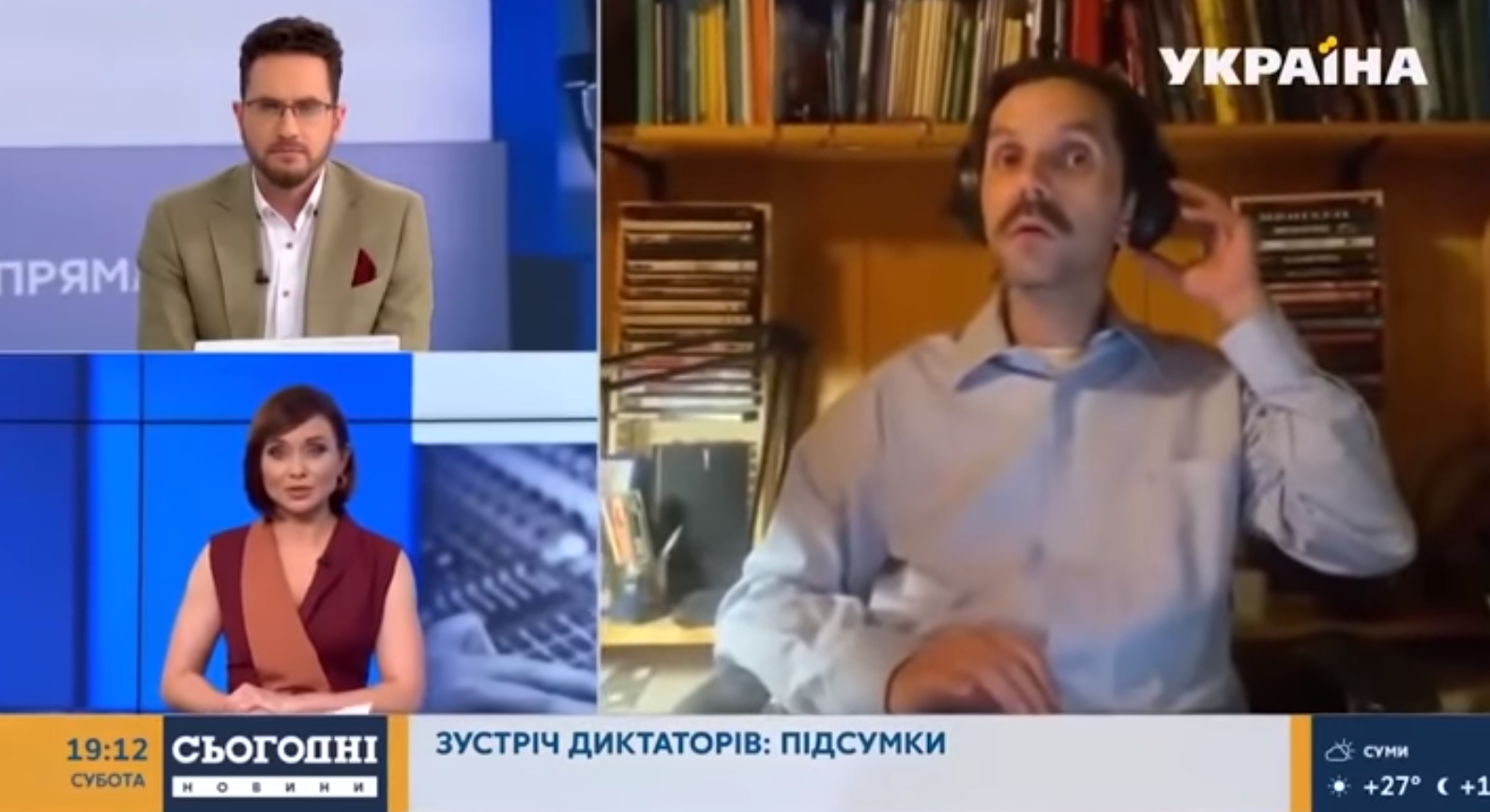 Єловський вийшов у прямий ефір за допомогою відеозв'язку, але виникли якісь технічні проблеми, через які він не чув студію.