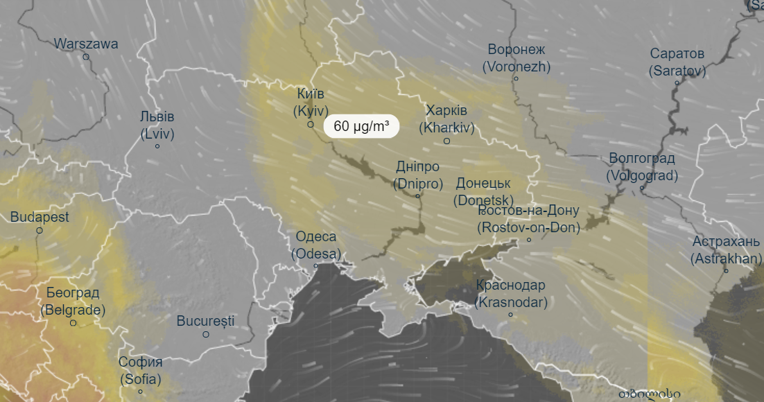 Фахівці називають це явище "Астраханським суховієм". На супутникових картах добре видно, що пил накрив головним чином Лівобережну Україну.