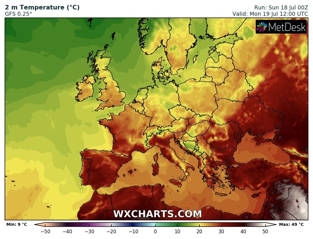 За її прогнозом, на Заході в понеділок очікується +23+28 градусів. На Житомирщині, Чернігівщині, Вінниччині та Київщині також почнеться зниження температури, +27+31 градус. Проте на решті території України ще пектиме: протягом дня +30+35 градусів.