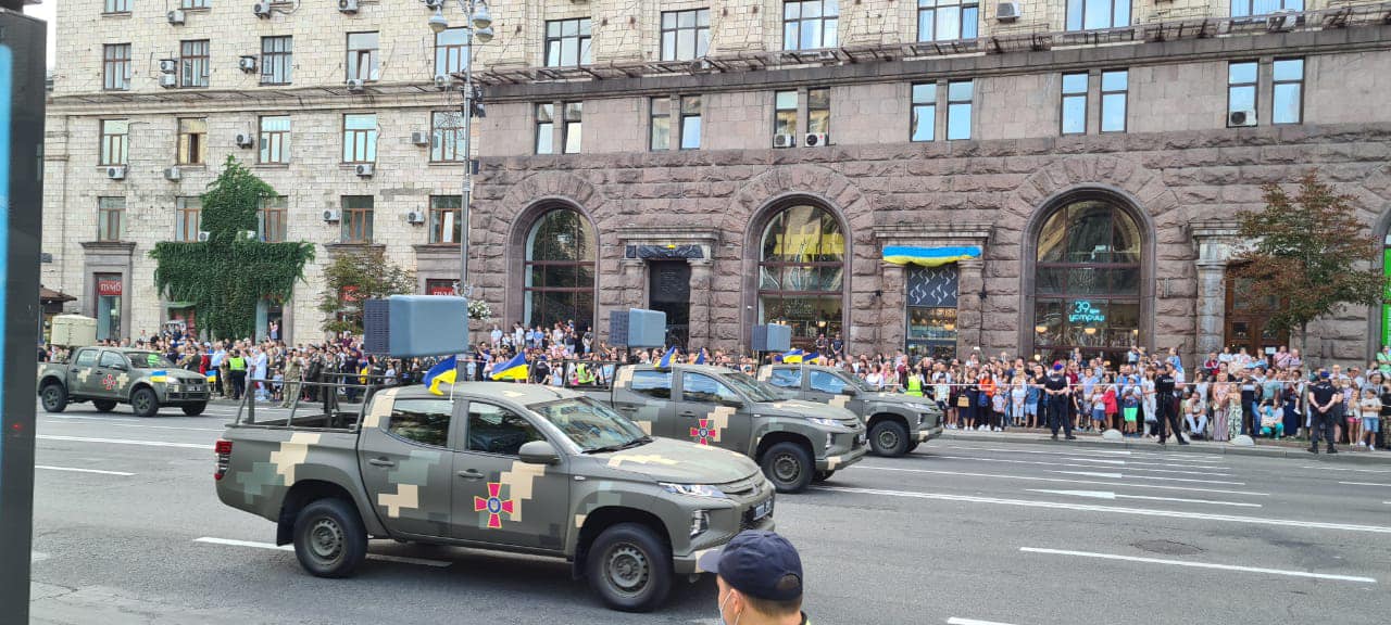Після пішої колони по Хрещатику проїде механізована колона, в якій будуть представлені реактивні системи "Вільха", "Нептун", ракетний комплекс "Грім" та інші українські і зарубіжні розробки.