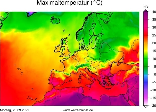 20-го вересня в більшості областей України вдень очікується усього +7+13 градусів. На Сході, Півдні, у Дніпрі з районами буде тепліше, +14+19 градусів, місцями можливо до +20 градусів.
