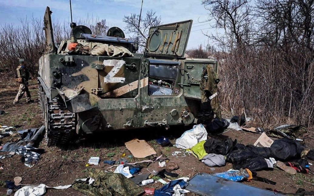 Станом на 26 квітня загальні бойові втрати серед особового складу російських окупантів становили близько 22 100 тисяч людей. Дані уточнюються.