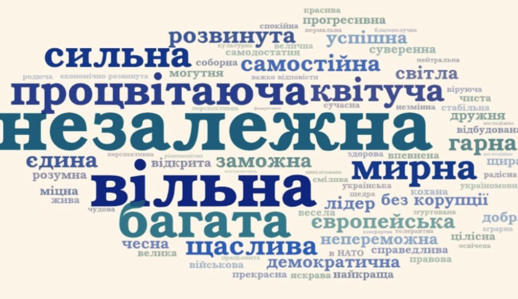 "Першим словом найчастіше була "вільна". Також серед перших слів часто звучали "сильна", "квітуча", "процвітаюча", "мирна", "щаслива". Другою ознакою для характеристики майбутнього України опитані найчастіше вживали "незалежна". Третьою ознакою - "багата". Також використовували такі характеристики як "європейська", "розвинута", "єдина", - свідчать результати опитування.