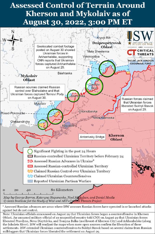 Про це йдеться у звіті американського Інституту вивчення війни (ISW) за 30 серпня, передає Час Пік.
