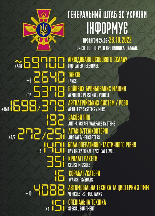Загальні бойові втрати противника з 24.02 до 28.10 орієнтовно склали: