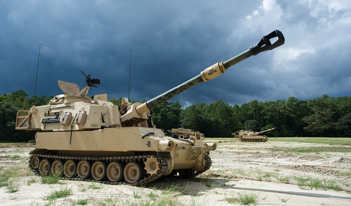 Довідка: M109 - американська самохідна артилерійська установка, класу самохідних гаубиць. Це броньована гусенична машина з гарматою 155 мм, яка використовує боєприпаси зразка НАТО. Вона базується на гусеничному шасі оригінальної конструкції з баштою, що обертається, на 360°. Корпус артилерійської системи та башта цільнозварна, виконана з катаної алюмінієвої броні, яка забезпечує захист від вогню стрілецької зброї та уламків снарядів польової артилерії.