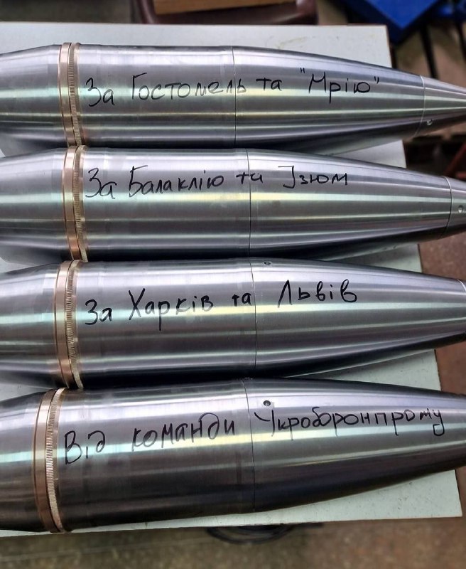 Держконцерн Укроборонпром розпочав серійне виробництво українських боєприпасів – зокрема, 152 мм снарядів. Перші фото з привітами для російських окупантів з'явилися в соцмережах.