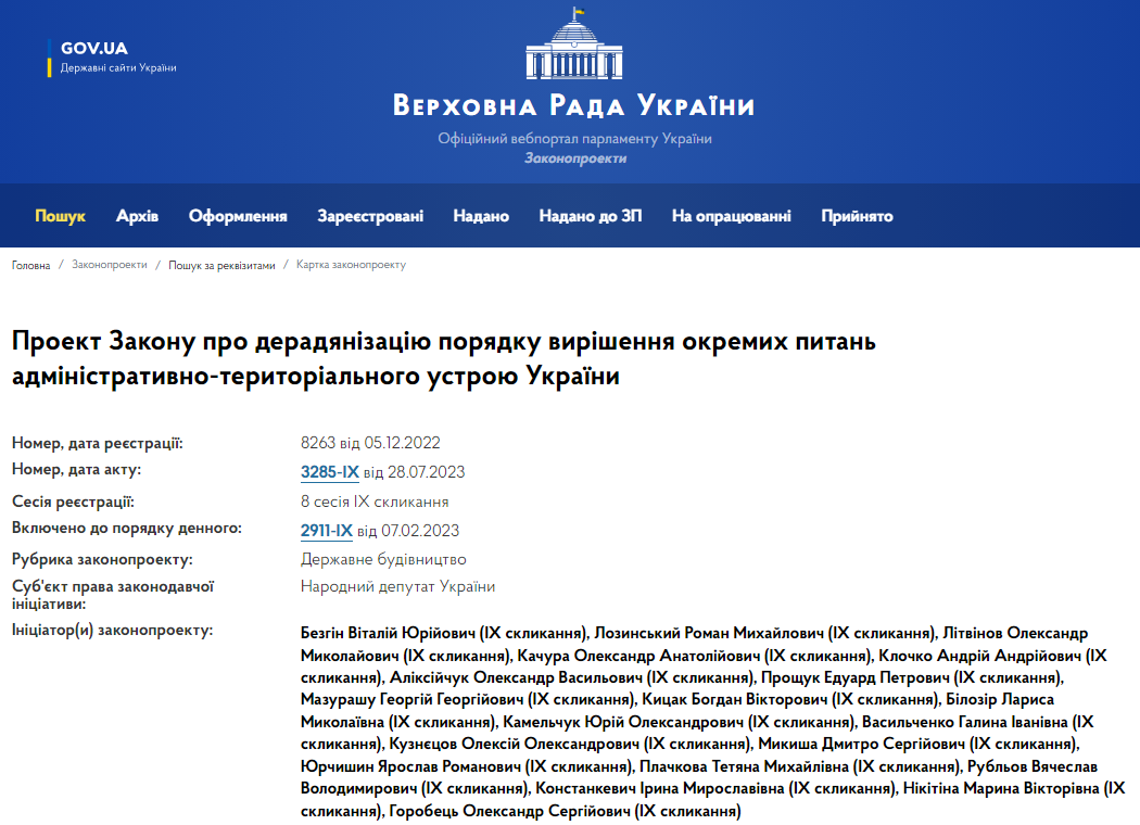 Документ пропонує прибрати радянське регулювання питань адміністративно-територіального устрою, що діє з 1981 року, встановити чіткі процедури віднесення населених пунктів до категорії міст, селищ і сіл.