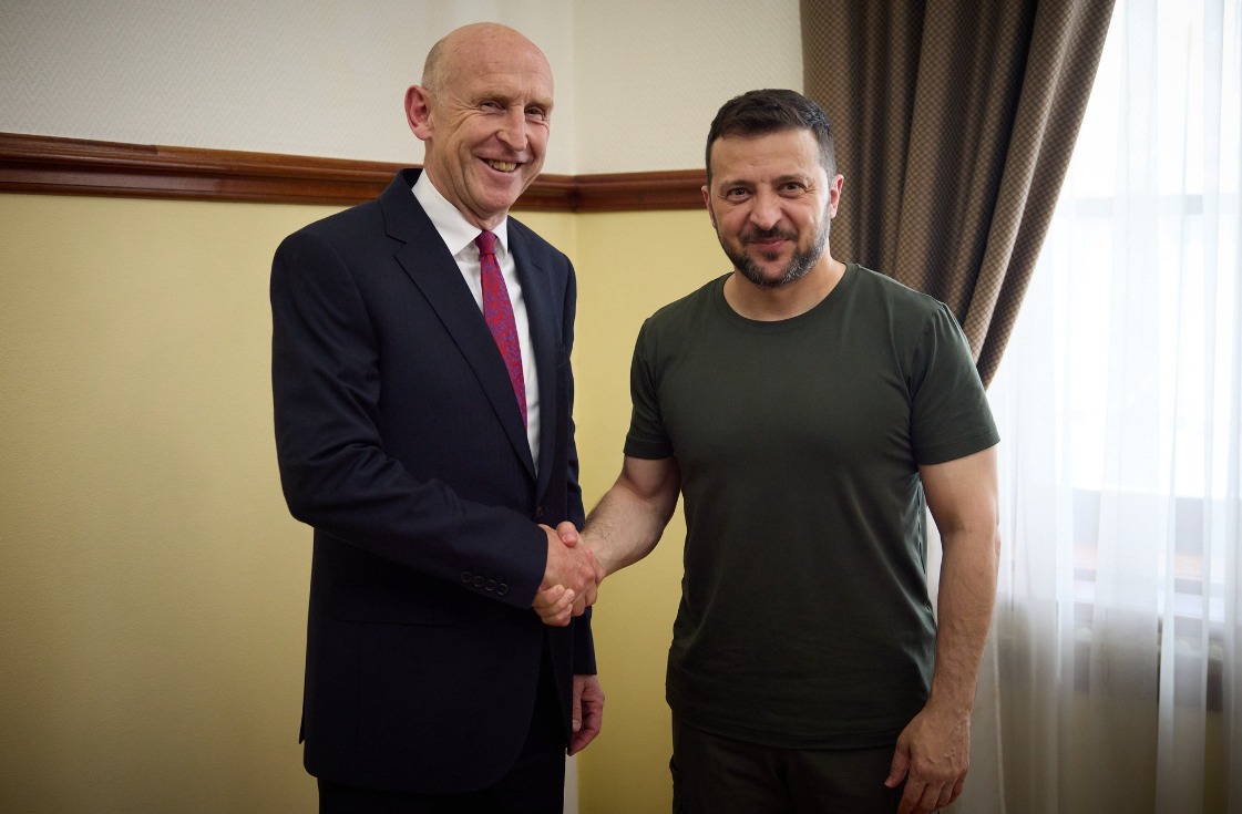 Президент України Володимир Зеленський та міністр оборони Рустем Умеров провели переговори з новим міністром оборони Великої Британії Джоном Хілі в Одесі, де Зеленський взяв участь у заходах з нагоди Дня ВМС ЗСУ.