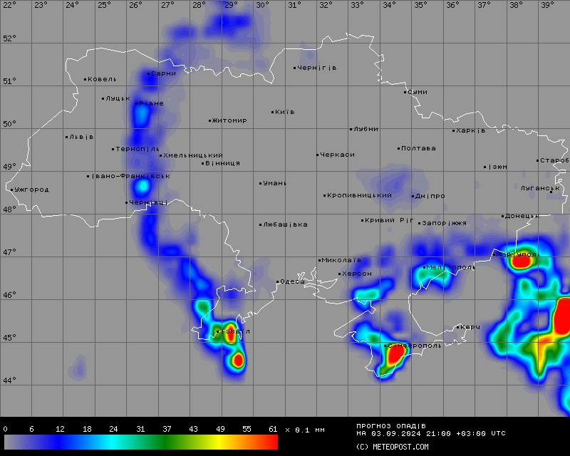 Дощі ймовірні на південному сході країни, включно з територією Криму.