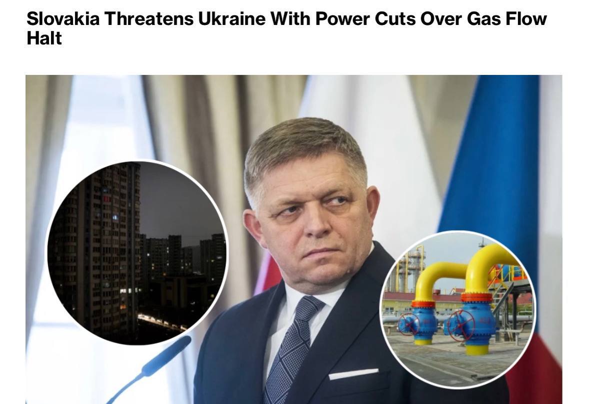 Прем'єр-міністр Словаччини Роберт Фіцо оголосив, що його країна може припинити постачання електроенергії в Україну, якщо Київ припинить транспортування російського газу до Центральної Європи.