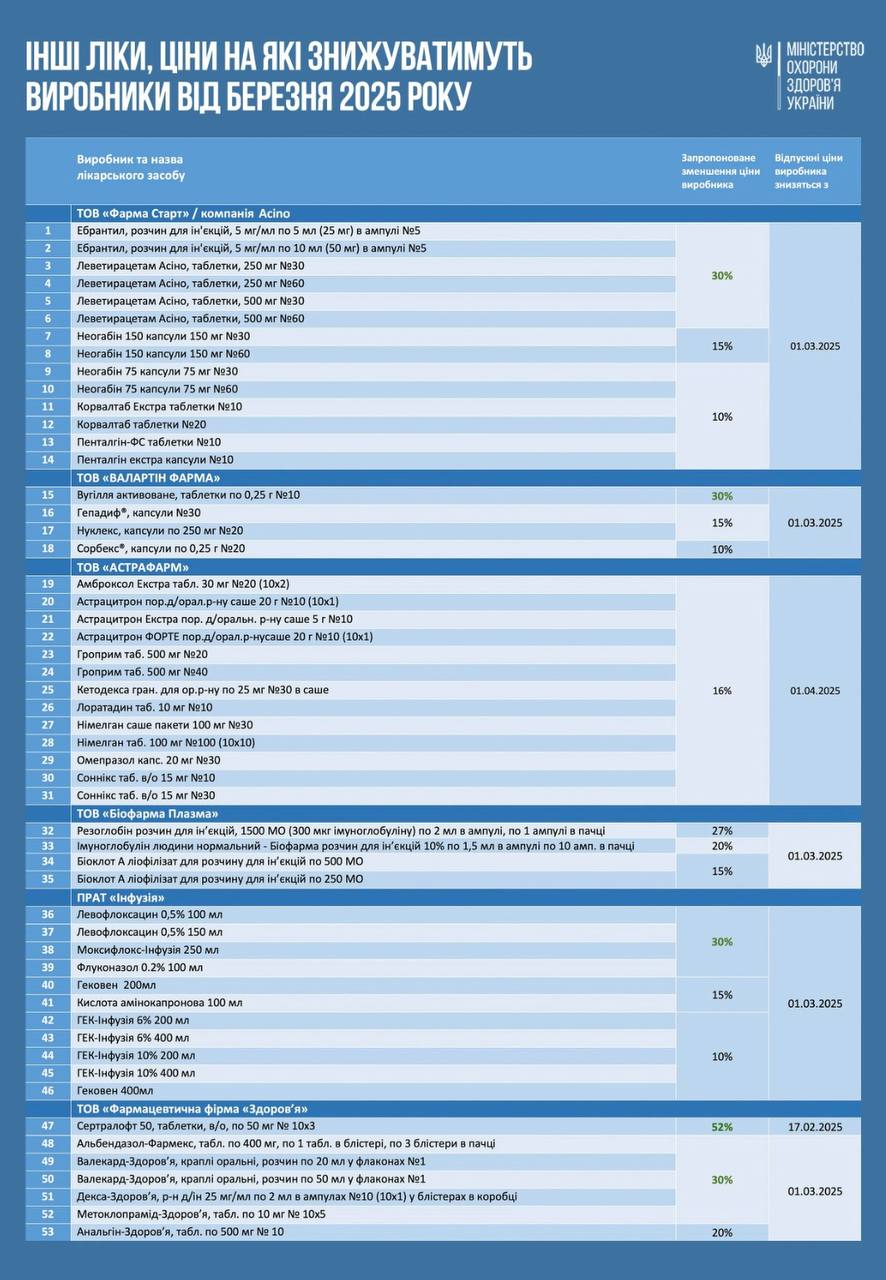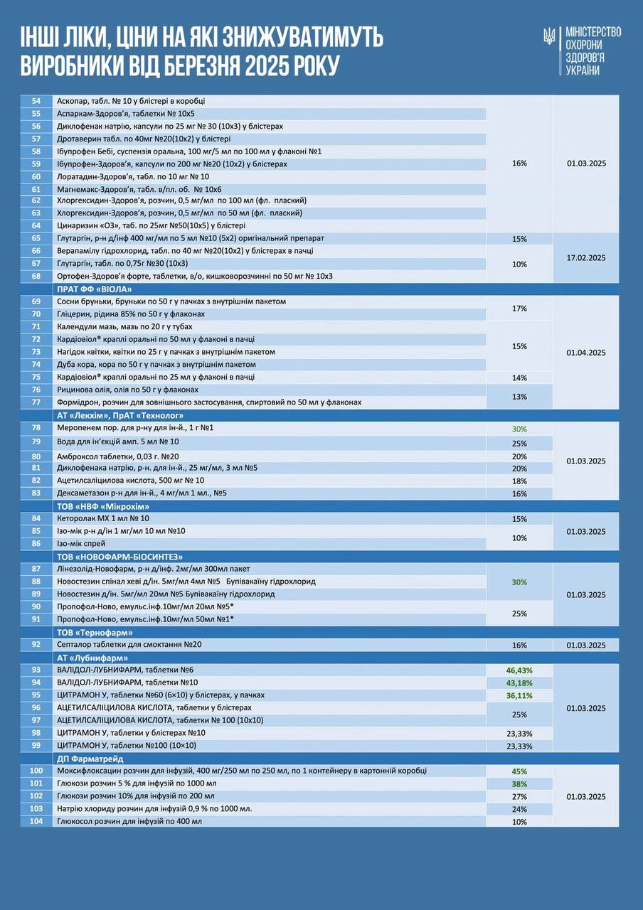 У 2025 році українські фармацевтичні виробники підписали декларації, згідно з якими відпускні ціни на найпопулярніші ліки знижуються на 30%. Перелік препаратів, які в аптеках будуть дешевше, поповнився ще понад 100 найменуванями.