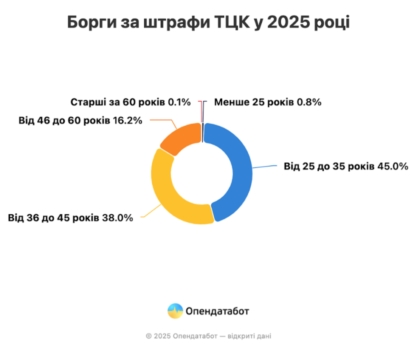Майже половину від прострочених штрафів виписали українцям віком 25-35 років. Ще 38% проваджень стосується людей віком 36-45 років.