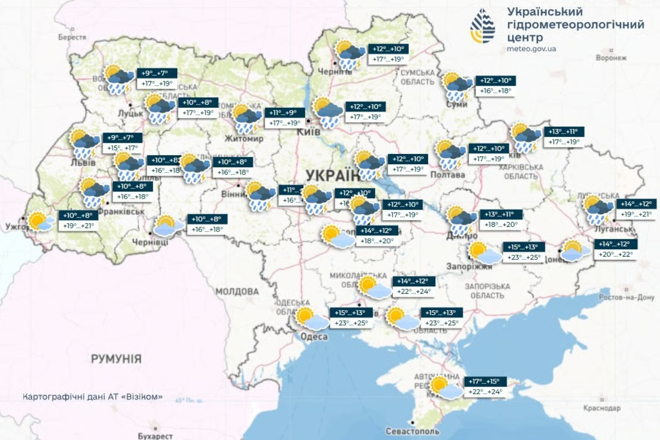 За даними Українського гідрометцентру, у більшості регіонів країни оголошено І (жовтий) рівень погодної небезпеки.