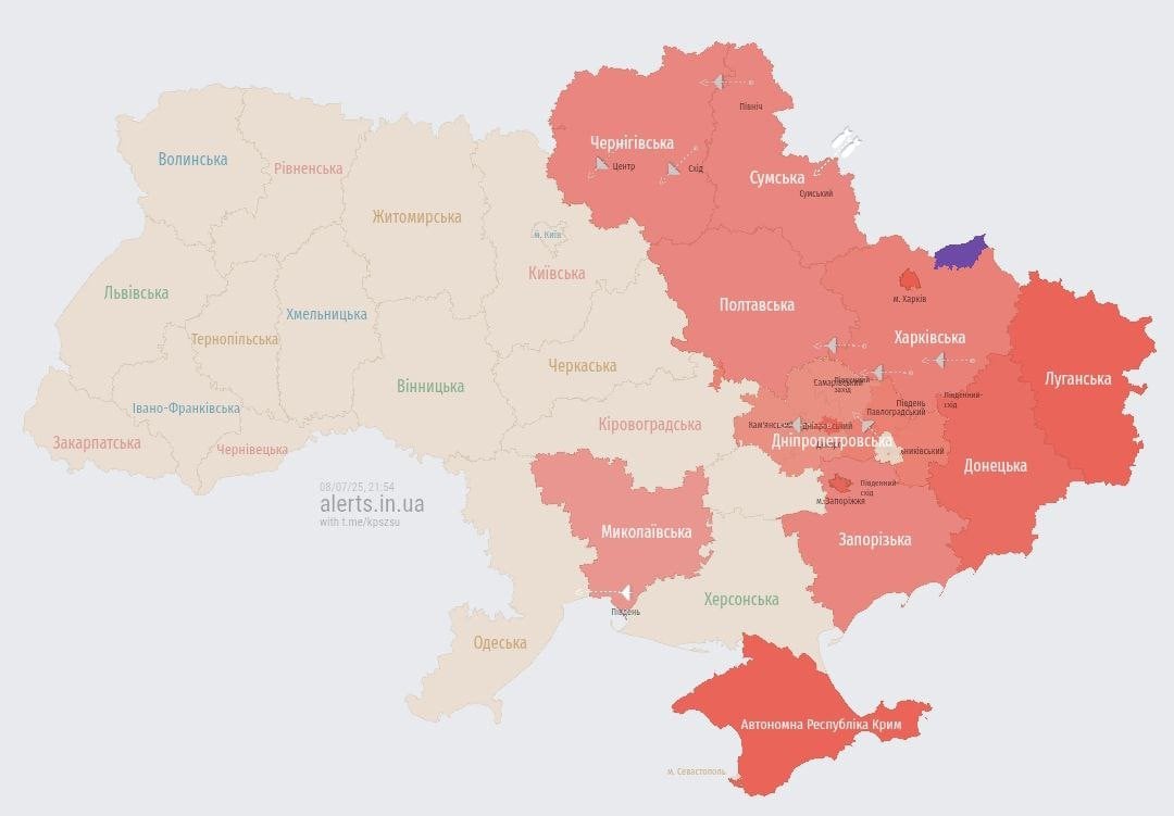 Увечері 8 липня по всій Україні почали лунати сигнали повітряної тривоги через масовий зліт ворожих дронів-камікадзе типу Shahed.
