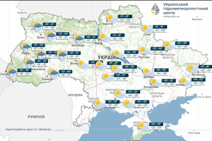 На Київщині мінлива хмарність, без опадів. Температура вночі +8…+13°C, вдень повітря прогріється до +27°C. У Києві вночі близько +10°C, вдень - +23…+25°C.