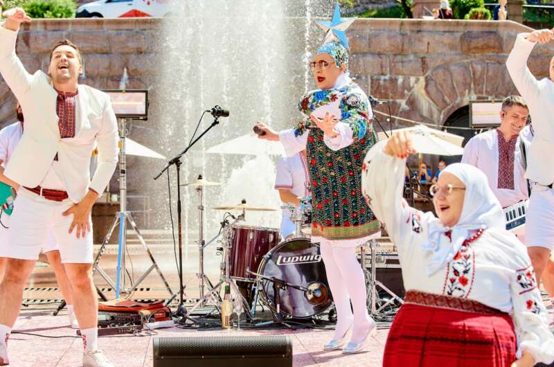 Вєрка Сердючка зі своїм творчим колективом Verka Serduchka Band і, звичайно ж, "мамою" влаштували драйвовий виступ у фонтані на Хрещатику.