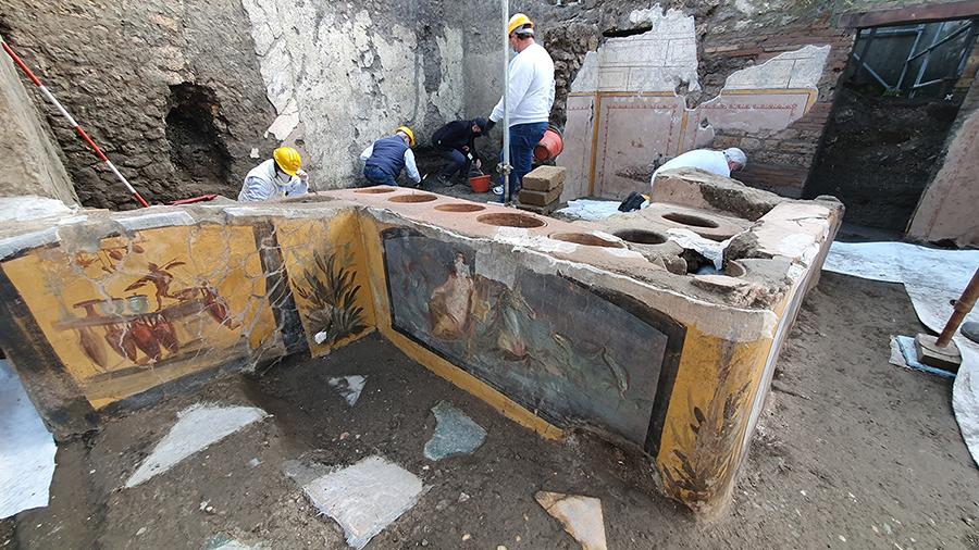 У давньоримському місті Помпеї археологи виявили повністю збережений вуличний кіоск із залишками їжі. Відомо, що місто було зруйноване в результаті катастрофічного виверження Везувію в 79 році н. е.