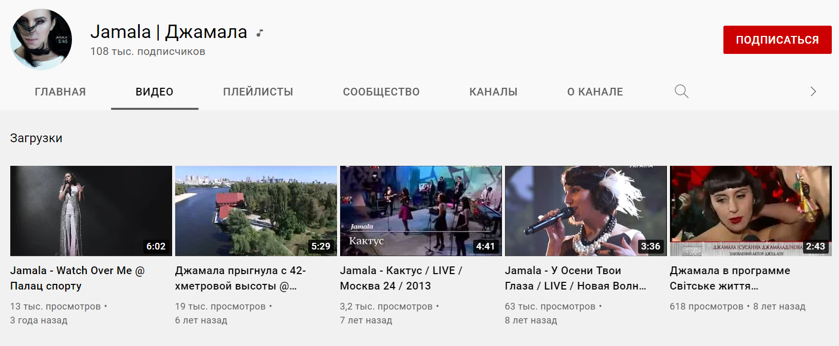 Найсвіжіше з доступних на даний момент відео на YouTube-каналі Джамали було завантажено 3 роки тому, повідомляє Час Пік.