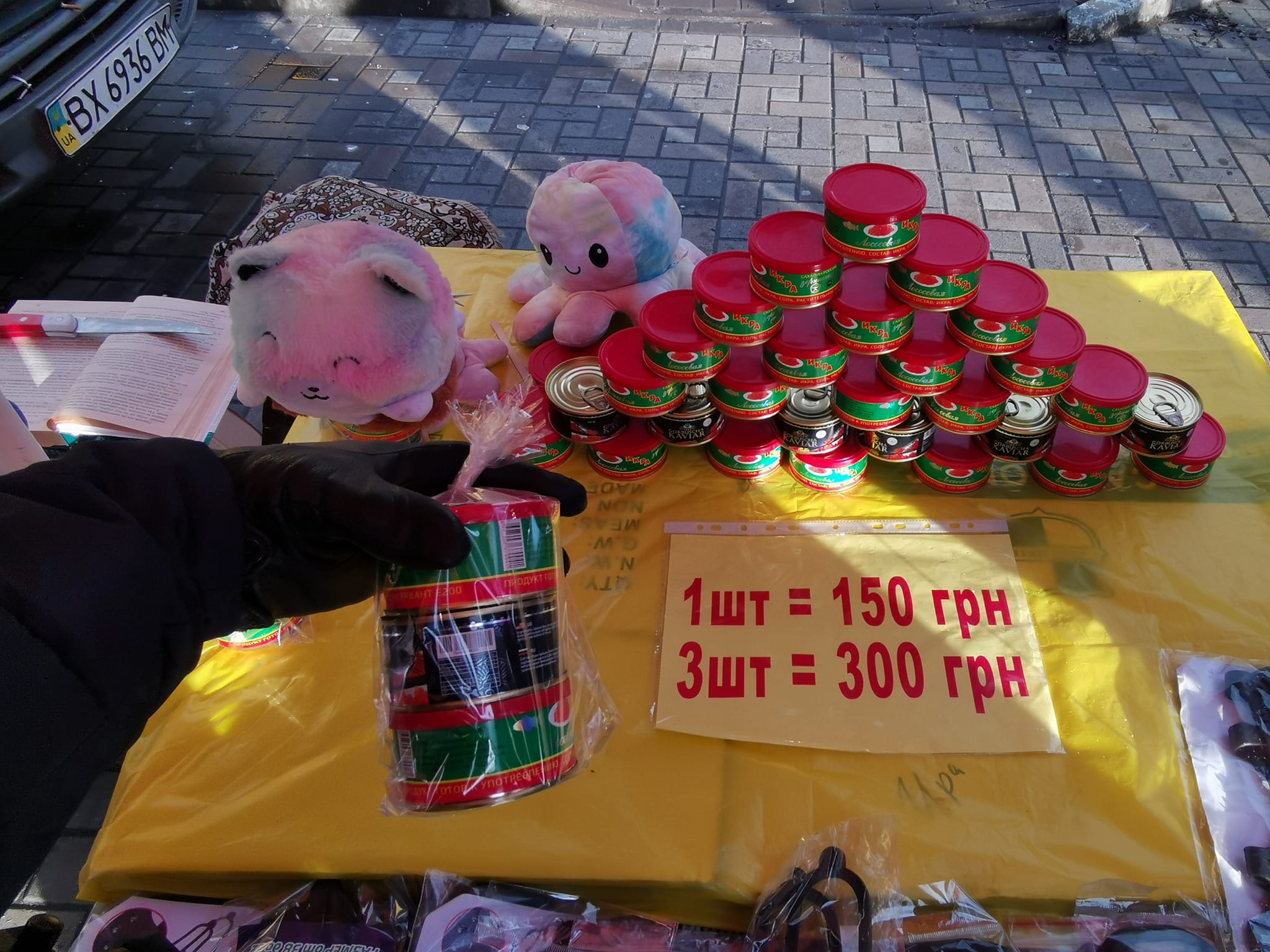 У мережі повідомляють, що останнім часом на вулицях Києва, біля станцій метро з'являються торгові точки, де продають нібито червону ікру з Росії та Білорусі за акцією: 1 банка за 150 гривень, три - за 300 гривень.