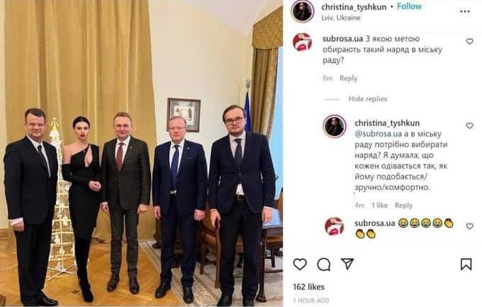 Зовнішній вигляд Тишкун обурив користувачів мережі. На думку більшості, таке вбрання доречне в нічному клубі, але не в мерії. Сама ж Христина, схоже, іншої думки.