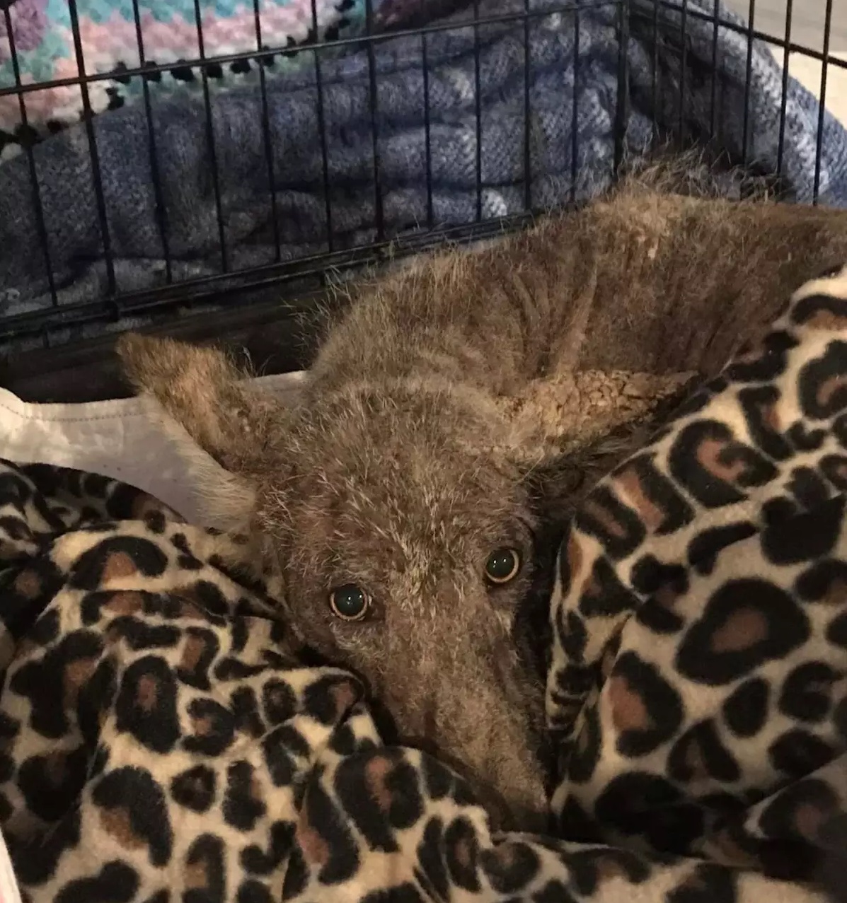 Крістіна забрала бідолаху до себе додому та поселила у підвалі. Там звір зігрівся і поїв. Жінка розповіла про знайденця у соцмережах, і незабаром загадкового звіра забрали волонтери.