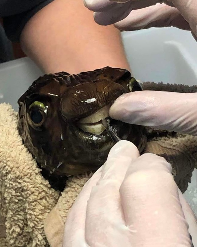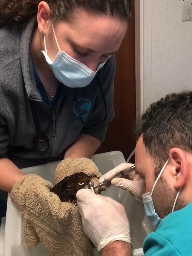 Лікар ввів Goldy анестезію і сточив зуб. Під час процедури медсестра тримала рибку в рушнику, щоб вона не спливла у воду.