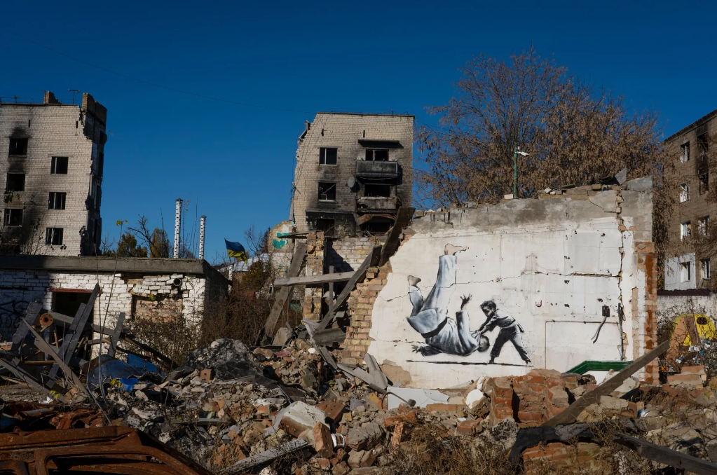 Зокрема, в офіційному аккаунті в Instagram Бенксі показав малюнок гімнастки, намальований на зруйнованому будинку у Бородянці Київської області.