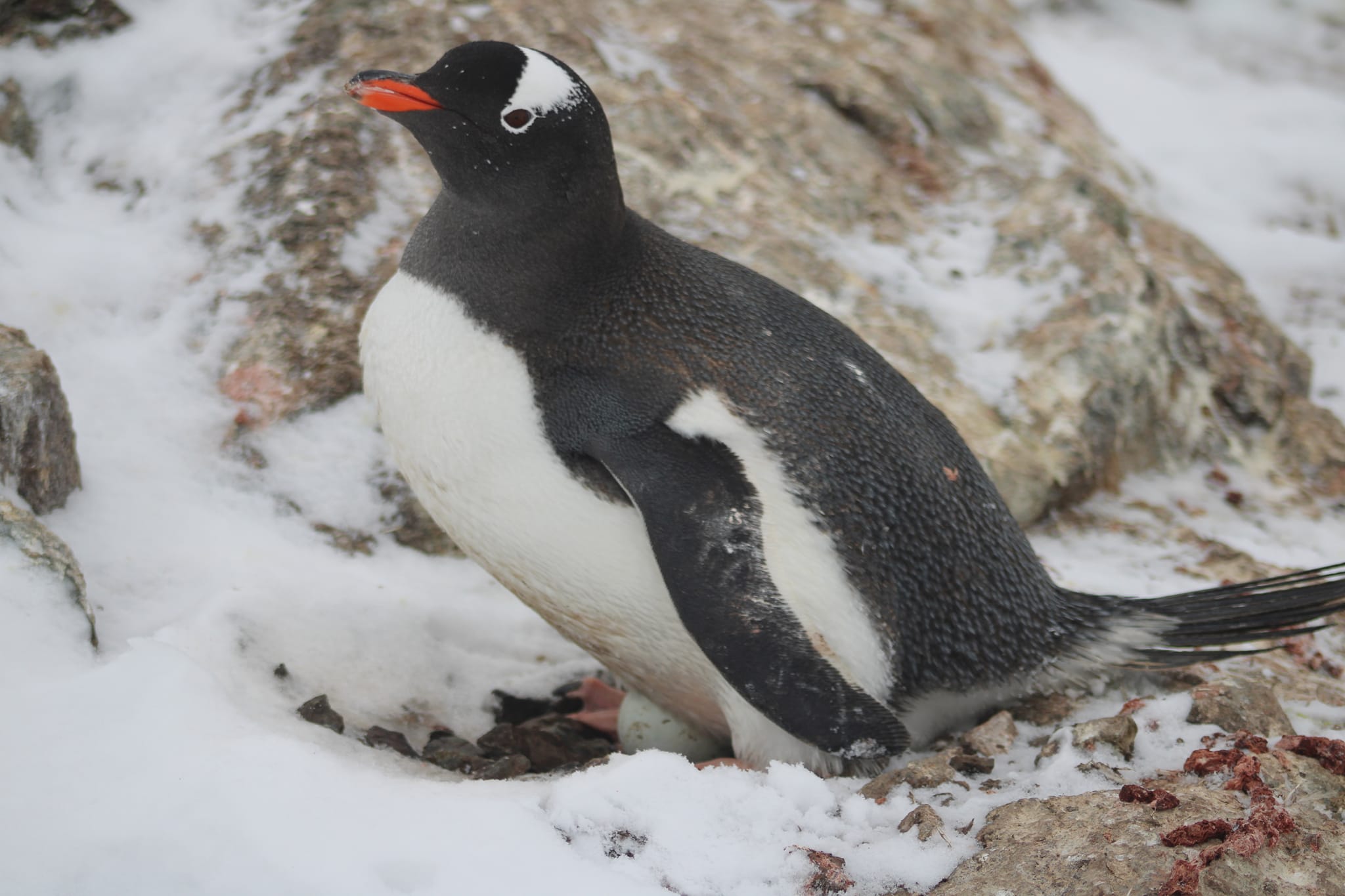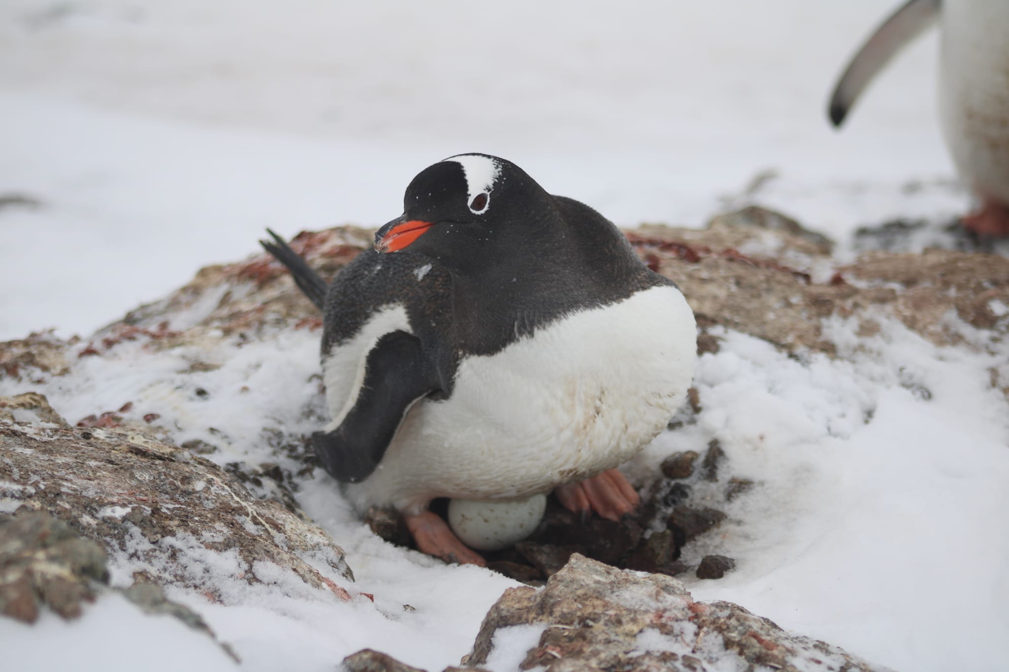 Він поділився, що є цікавий спосіб визначити наявність яйця: якщо пінгвін при підході людини лишається сидіти на гнізді та притискається до нього, це певний знак, що в гнізді є яйце.