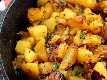 - Ідеальна сковорода — чавунна або з товстим дном, адже вона рівномірно розподіляє тепло й довго його утримує. Варто віддати перевагу широкій моделі з високими бортами — так картопля не буде тушкуватися у власній волозі, а саме смажитися.