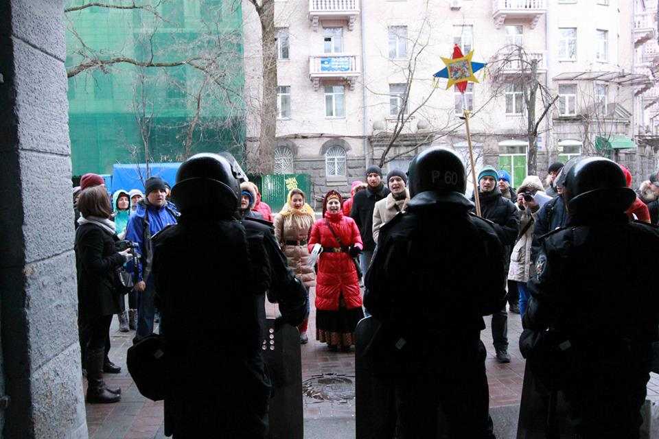 «Мы решили принести немного радости тем, кто охраняет правительственный квартал, - говорит Ярина Цветок, лидер группы «Фолькнери». - И своей колядой пытаемся донести до них, что охранять надо не представителей власти, а участников Евромайдана».