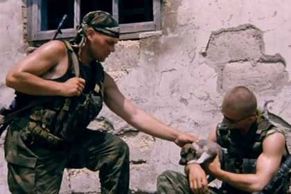 Кадр из фильма «Марш-бросок» Государственный комитет телевидения и радиовещания Украины попросил телеканалы пересмотреть программное наполнение и не показывать фильмы, «пропагандирующие» российских правоохранителей и войска специального назначения. Об этом говорится в обращении, опубликованном на сайте ведомства 13 марта.