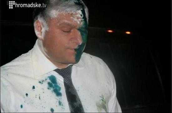 Кандидата в Президенты от Партии регионов Михаила Добкина облили зеленкой и обсыпали мукой. Как сообщает "Громадське ТВ", акцию в Киеве провели несколько десятков "афганцев".