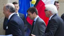 Министры иностранных дел Германии, Франции, Украины и глава администрации президента России в течении телефонной конференции в понедельник отметили, что договорились: не позднее вторника трехсторонняя контактная группа устроит прямой контакт с помощью видеоконференции с сепаратистами, сообщил МИД Германии.