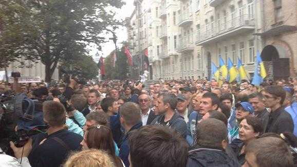 Напомним, возле Администрации Президента Украины проходит пикет с требованием предоставить подмогу силам антитеррористической операции в Иловайске Донецкой области. 5-й день в окружении находятся подразделения батальонов "Донбасс", "Днепр", "Азов", "Херсон" и "Доброволец".