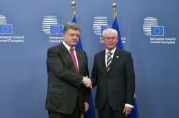 В Брюсселе Президент Украины Петр Порошенко провел встречу с Президентом Европейского Совета Германом Ван Ромпеем. Глава государства высоко оценил неизменную поддержку и солидарность Европейского Союза в адрес Украины, что является особенно важным в этот сложный и трагический момент украинской истории.