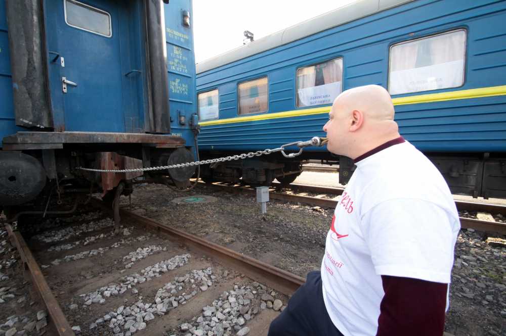 Львовянин Олег Скавыш, по прозвищу "Тягнизуб" установил новый силовой рекорд, протащив пассажирский железнодорожный вагон весом 56 тонн на расстояние 12 метров. Особенность этого рекорда заключается в том, что груз вагон Олег тянул зубами без всякой дополнительной опоры.
