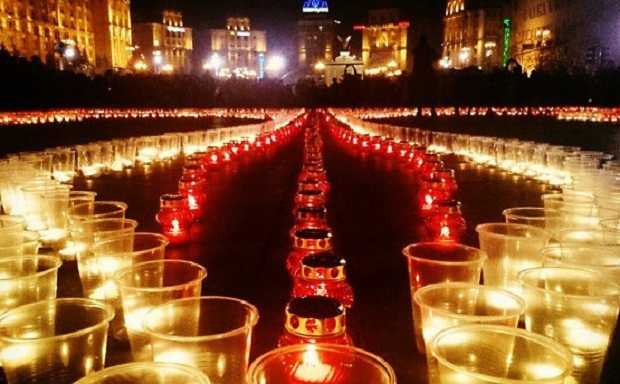 На Майдане Независимости в Киеве зажгли шесть с половиной тысяч огней. Свою свечу в тризубе могли поставить все желающие. В общем, к этому действу присоединились несколько сотен человек. И буквально за полчаса выложили огромный герб высотой более 20 метров и шириной 14 метров.