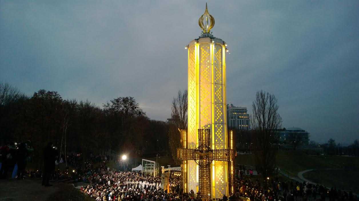 Возле Национального музея "Мемориал памяти жертв голодоморов в Украине" тысячи Украинцев зажгли свечи в память о жертвах Голодоморов.