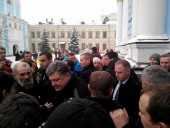 Президент Украины Петр Порошенко отстоял утреннюю службу в Михайловском соборе, где в 7:00 началась молитва за Украину.